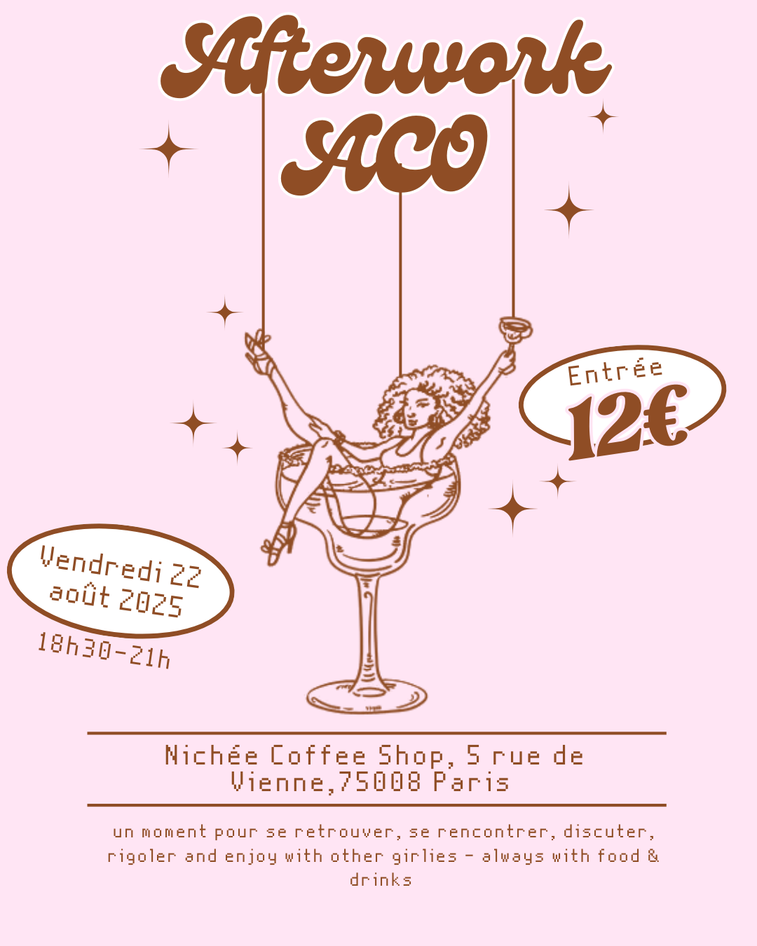 Viens discuter, rire, créer du lien et juste profiter d’un bon moment, le tout avec de la bonne musique et autour de délicieux snacks & drinks (alcohol-free, of course) 💫